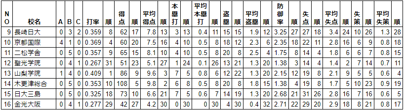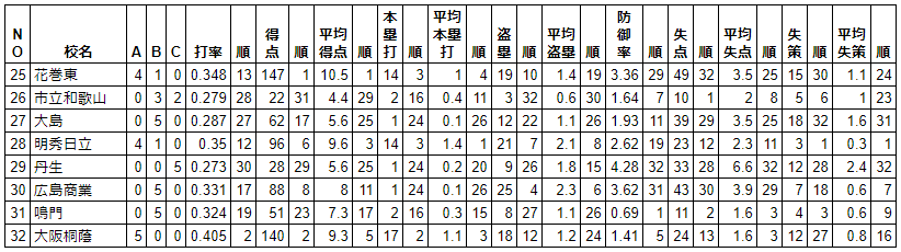 花巻東、市立和歌山、大島、明秀日立、丹生、広島商業、鳴門、大阪桐蔭