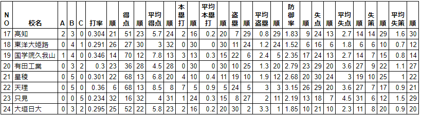 高知、東洋大姫路、国学院久我山、有田工業、星稜、天理、只見、大垣日大